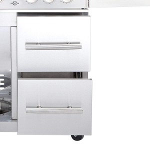 Schubladen für Chef XL: Ein häufiges Problem an Grillstationen ist der Platzmangel bzw. der nutzbare Stauraum. Durch die nachrüstbaren Schubladen für den Chef XL gehören Platzprobleme der Vergangenheit an. Die Hälfte Ihres Unterschranks (rechte Tür) wird durch zwei Schubladen ersetzt. Die Montage der Schubladen ist kinderleicht. Wie die Türen des Chef, besitzen auch die Schubladen Soft Close Einzüge. Mit jeweils 49,5 x 28,5 x 48 cm schaffen Sie ausreichend Stauraum für Grillbesteck, Thermometer, Räucherchips und vieles mehr, was gerne am Grill verbleiben darf. Passend nur für den Chef XL Modular von Allgrill !!! Achtung: Erst mit Chef XL ab Auslieferung 01.11.2021 kompatibel !!!